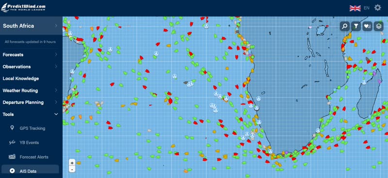 It only took us about 20 minutes to make our way past the end of the breakwater and out into open ocean. While the harbor had some wind, there was very little on the open water, so we continued motoring northwest for awhile past Robben Island. We eventually found enough wind to raise the main and unfurl the genoa headsail.